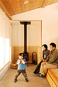 右手のフロアに腰かけ、四季折々の美しい自然を話題にスローなひとときを過ごす。